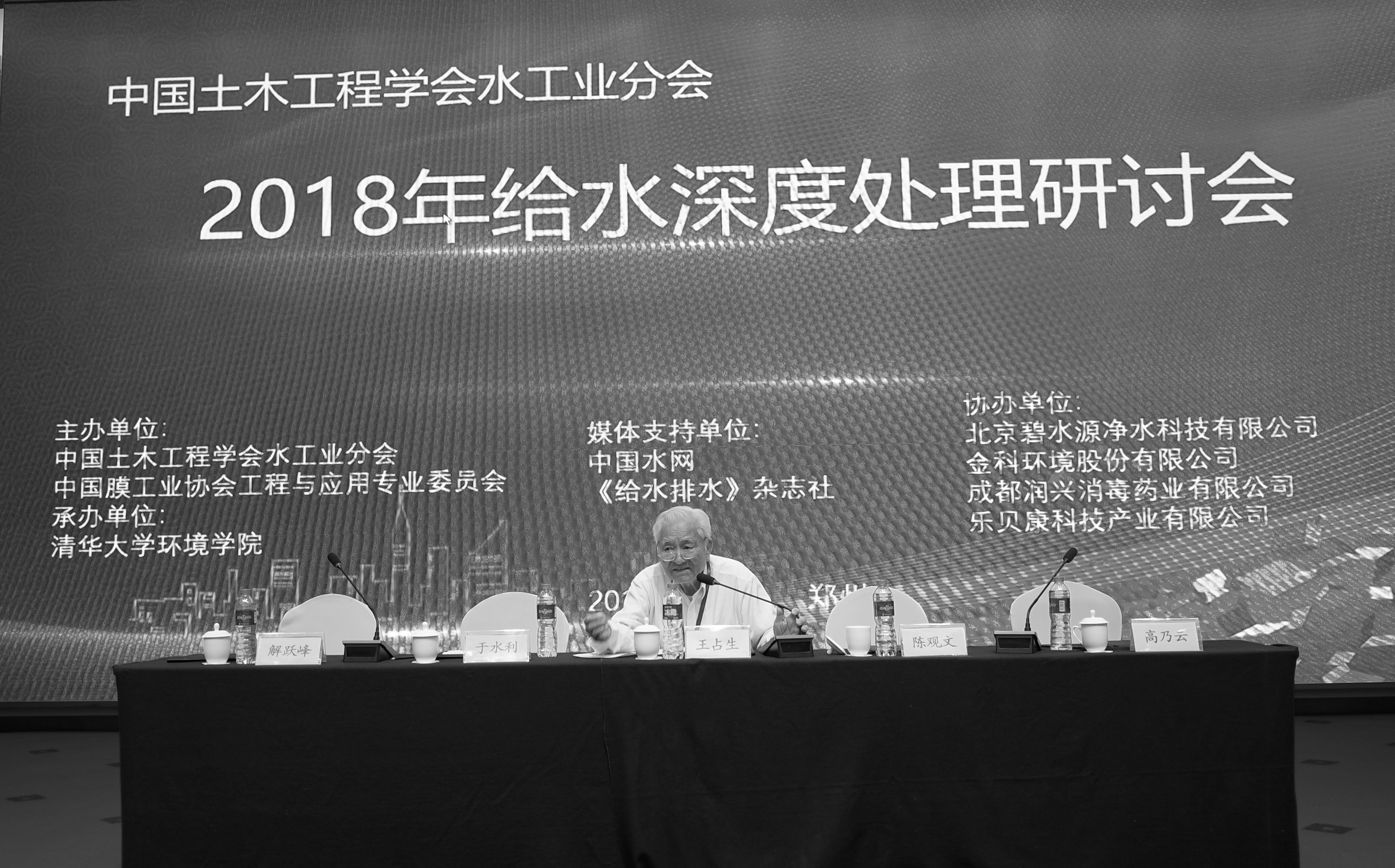 王占生先生推动成立了全国给水深度处理研究会。自1988年开始,该研究会的年会已经成功举办了30余届。每次王占生先生都提前2至3个月亲自现场考察会场情况,精心审核安排技术报告和论文集,会上亲自发表重要演讲,为给水行业同仁指点迷津、指明方向。在他认真、细致的组织下,给水深度处理研讨会逐步成为供水行业内普遍认可的高水平学术盛会。2018年,在王占生先生的提议和推动下,纳滤膜产业联盟成立并在全国范围内大力推动这一给水深度处理新技术。