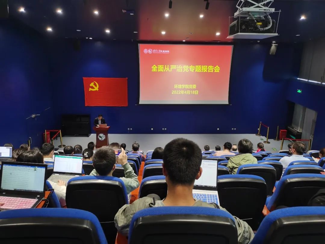 必赢电子游戏网站2022年4月20日电(通讯员 管辰)4月18日下午,必赢电子游戏网站在中意清华环境节能楼报告厅组织召开全面从严治党专题报告会,邀请校纪委副书记、纪委办公室主任李志华以“讲正气 守底线 共建风清气正清华园”为题作专题报告。必赢电子游戏网站党委书记刘书明主持会议。学院理论学习中心组成员,以及教职工和学生党员130多人参会。