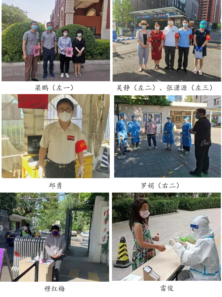 疫情防控,有你有我。一个月以来,水环境所党支部多名教职工党员投身疫情防控一线,主动在疫情防控最需要的地方贡献自己的力量。无论是烈日下的门岗值守,还是核酸检测秩序维护,或者社区的观察督导,甚至是车库门前的秩序维护,都留下了支部党员志愿服务的身影。5月22日,梁鹏积极响应学院党委党员双报到的号召,参加了双清苑社区北门值守工作。5月28日,吴静和张潇源顶着酷暑参加了双清苑社区车库门值守。虽然当时进出的车辆比较多,但教职工和家属均积极配合扫描登记,体现了清华人众志成城应对疫情的责任感。5月份,支部党员邱勇3次参加西北社区的疫情防控工作。支部党员、博士后罗娟参加了中楼社区党支部组织的街道后院核酸检测秩序维持和引导服务。支部党员、博士后穆红梅参加了中楼社区组织的对学校南门、蓝旗营北门、西南门和油库门的观察督导工作。支部青年委员雷俊、宣传委员刘秋琳等都报名参加了社区的志愿服务活动。