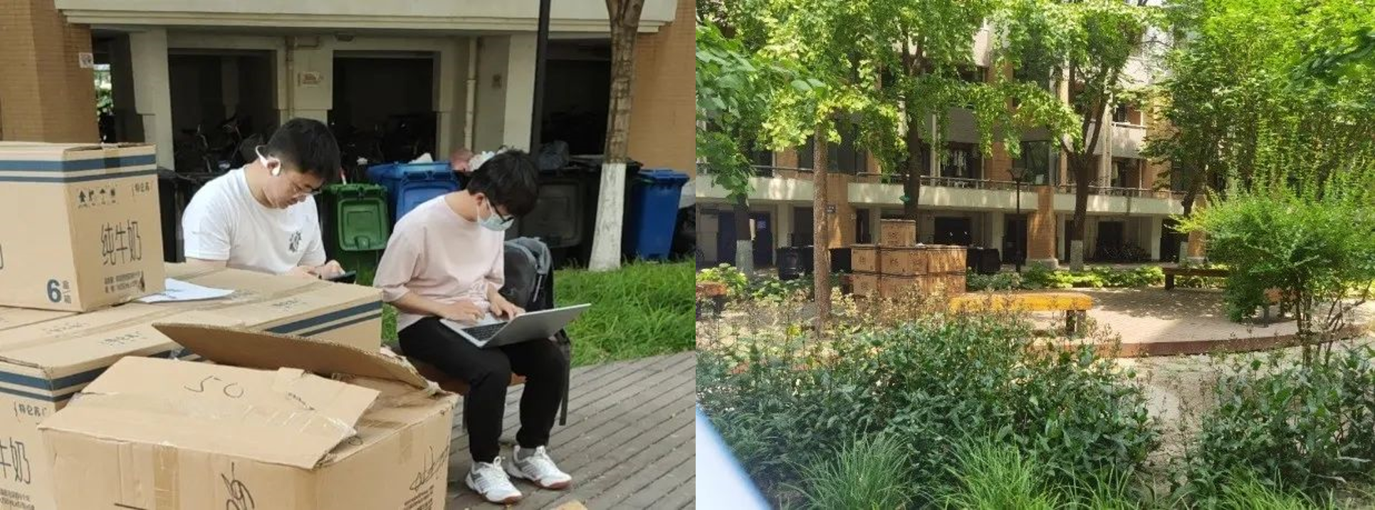 下午4点,第二批200多份礼包运送至紫荆宿舍4号楼和6号楼楼下,向在校本科生同学发放。