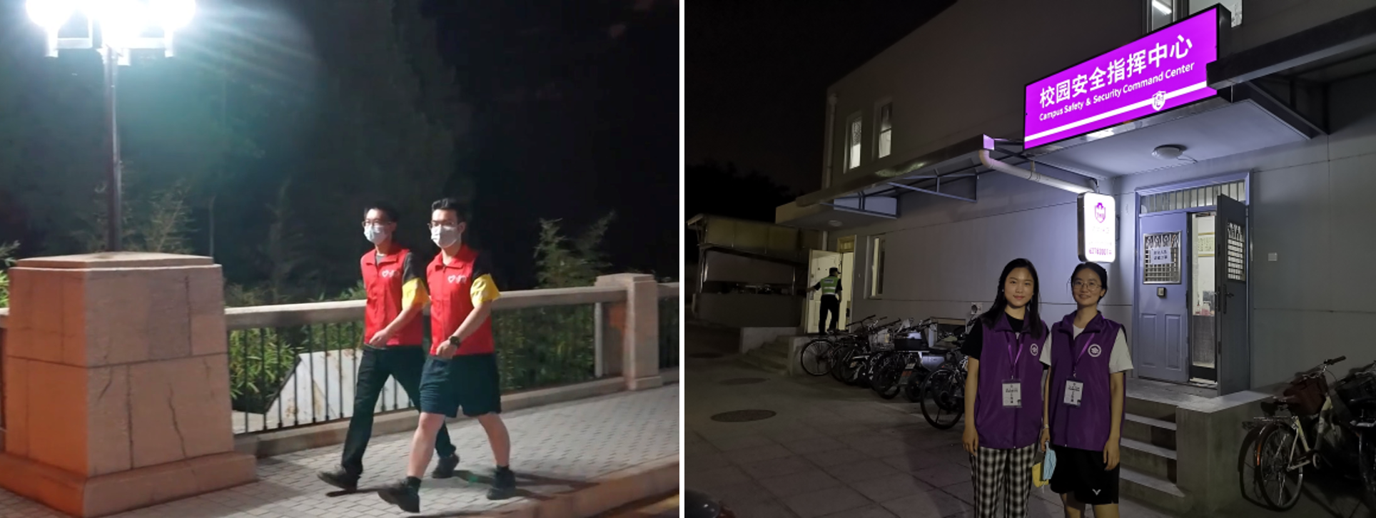 5月14日学校加强校门管控以来,学校成立“战疫‘清’年突击队—校园巡逻分队”,志愿者们每天晚上到次日凌晨,沿着规定路线进行巡逻,及时发现和避免违规行为的发生。学院退伍老兵李鹏飞、朱峰在非常时期挺身而出,第一时间加入了校园巡逻分队;汪湘、杨萌祺同学虽为女生,却巾帼不让须眉,也加入了巡逻志愿活动。他们一方面为保障校园安全贡献了自己的一份力量,另一方面也体验到了校园保卫人员的不易。在平安校园的背后,是无数人不分昼夜的守护,而其中也有环境学子的坚守。
