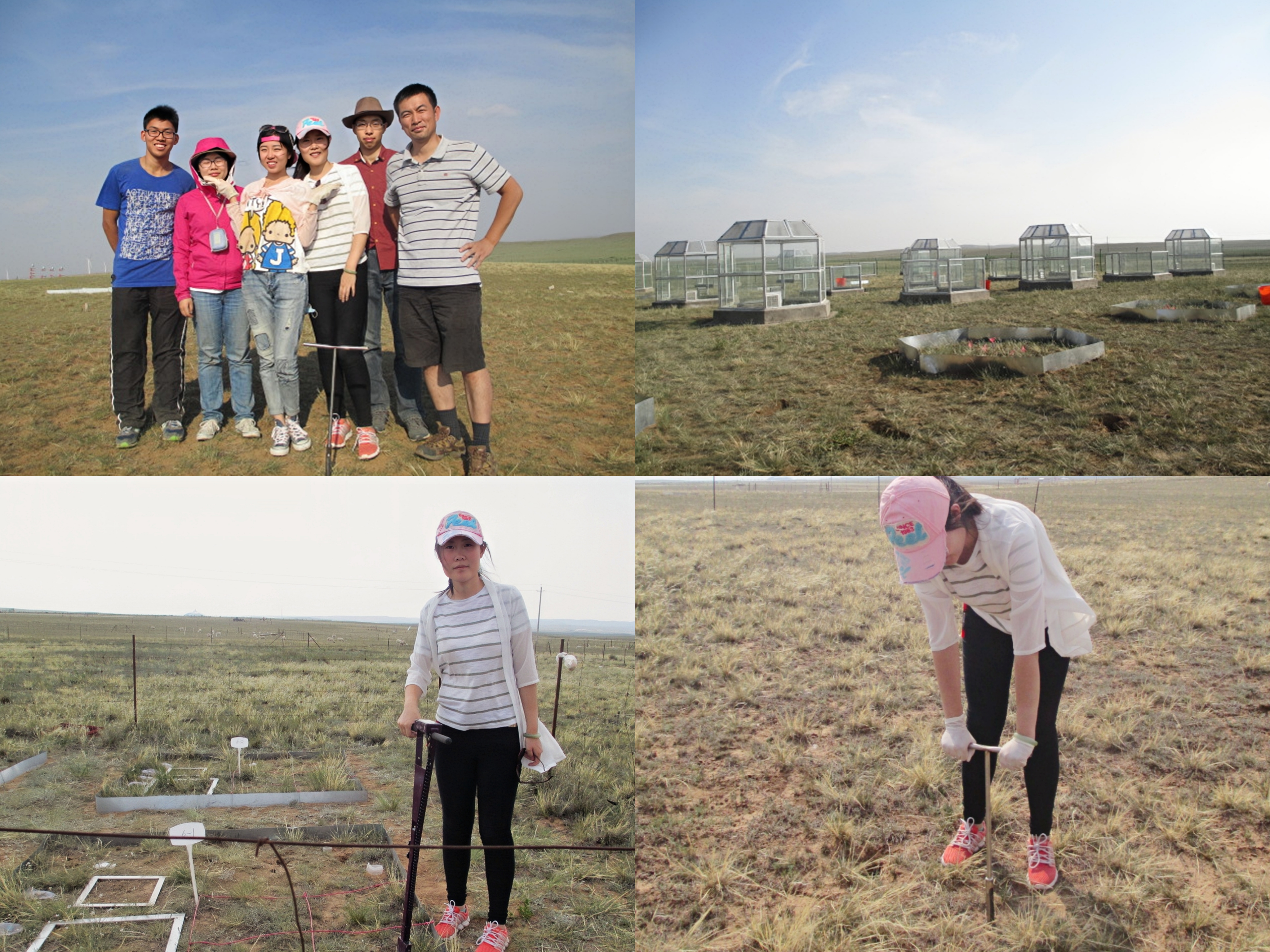 高群与课题组成员在内蒙古四子王旗气候变化模拟实验样地采样
