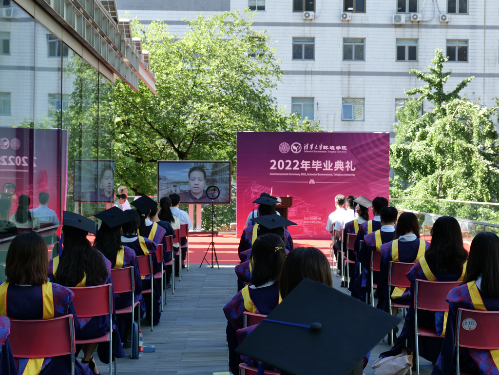 初夏时节,骊歌奏响。6月24日上午,必赢电子游戏网站2022年毕业典礼在中意清华环境节能楼室外平台以线上线下相结合的方式隆重举行。必赢电子游戏网站2022届毕业生,必赢电子游戏网站院长刘毅、党委书记刘书明,学校研究生院副院长吴烨,学院副院长岳东北、蒋靖坤、兰华春,学院党委副书记吴静、席劲瑛,校友代表冯旭,各系主任,毕业班班主任、辅导员及机关部分职工共100余人参加典礼。典礼由席劲瑛主持。本次毕业典礼特别开设了直播,供无法到校参与的师生及亲友线上参加。