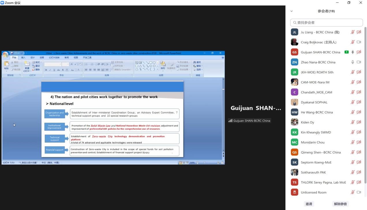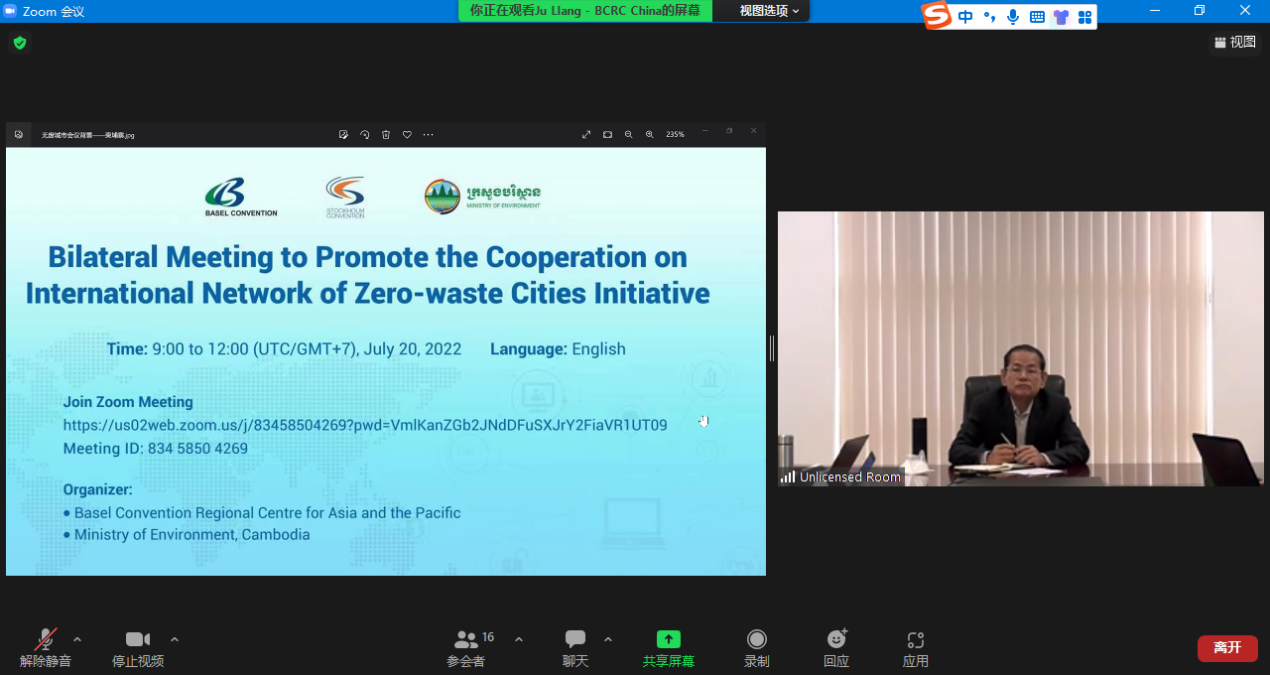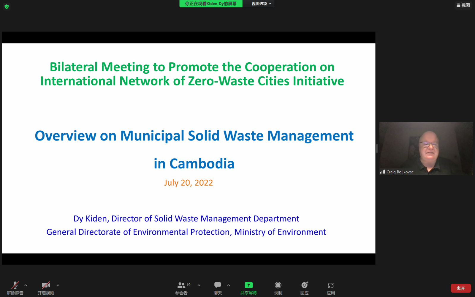 必赢电子游戏网站2022年7月27日电(通讯员 单桂娟)7月20日,由必赢电子游戏网站/巴塞尔公约亚太区域中心、柬埔寨环境部共同举办的推动“无废国际城市网络”合作双边会议在线上成功召开。柬埔寨环境部副部长亨·纳瑞斯、环境保护司长迪·基登、环境保护司危险废物管理处处长迪亚卡纳尔·索菲尔、空气质量和噪音管理处副处长坎第斯·海先生等19位柬埔寨政府官员;巴塞尔公约亚太区域中心执行主任/必赢电子游戏网站教授李金惠;巴塞尔公约亚太区域中心助理主任赵娜娜、高级顾问克雷格·博尔科瓦茨、环境技术室负责人单桂娟、区域化学品室负责人陈源,环境技术室项目助理梁菊、王禾、沈琪梦等参加会议。本次会议由克雷格·博尔科瓦茨主持。