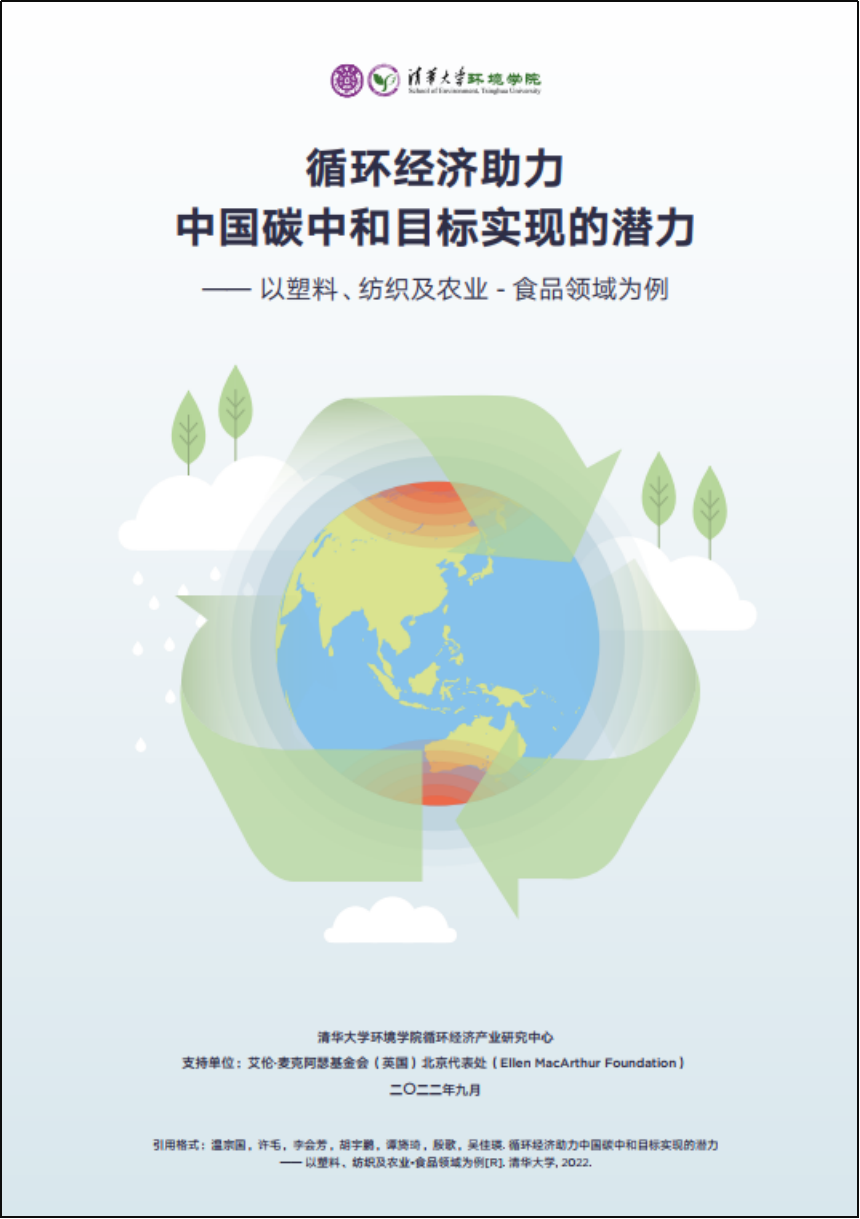 在艾伦∙麦克阿瑟基金会(英国)北京代表处(Ellen MacArthur Foundation)的支持下,必赢电子游戏网站循环经济产业研究中心围绕相关问题开展研究并发布《循环经济助力中国碳中和目标实现的潜力——以塑料、纺织及农业-食品领域为例》研究报告(以下简称《报告》),旨在揭示循环经济的减排机理与作用路径,探索与评估循环经济措施对温室气体减排的贡献和潜力,为全球后疫情时代的绿色复苏提供中国方案,同时为中国构建绿色低碳循环发展的经济体系提供相关政策建议。