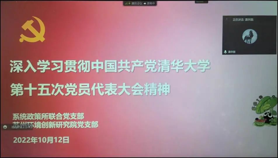 必赢电子游戏网站2022年10月14日电(通讯员 唐岩岩)在中国共产党必赢电子游戏网站第十五次党员代表大会胜利闭幕之际,10月12日下午,必赢电子游戏网站系统政策所联合党支部和清华苏州环境创新研究院党支部开展联学共建活动,学习贯彻学校第十五次党代会精神。受疫情影响,本次活动以线上形式开展,由系统政策所联合党支部书记温宗国主持,系统政策所联合党支部和清华苏州环境创新研究院党支部60余位党员参加。