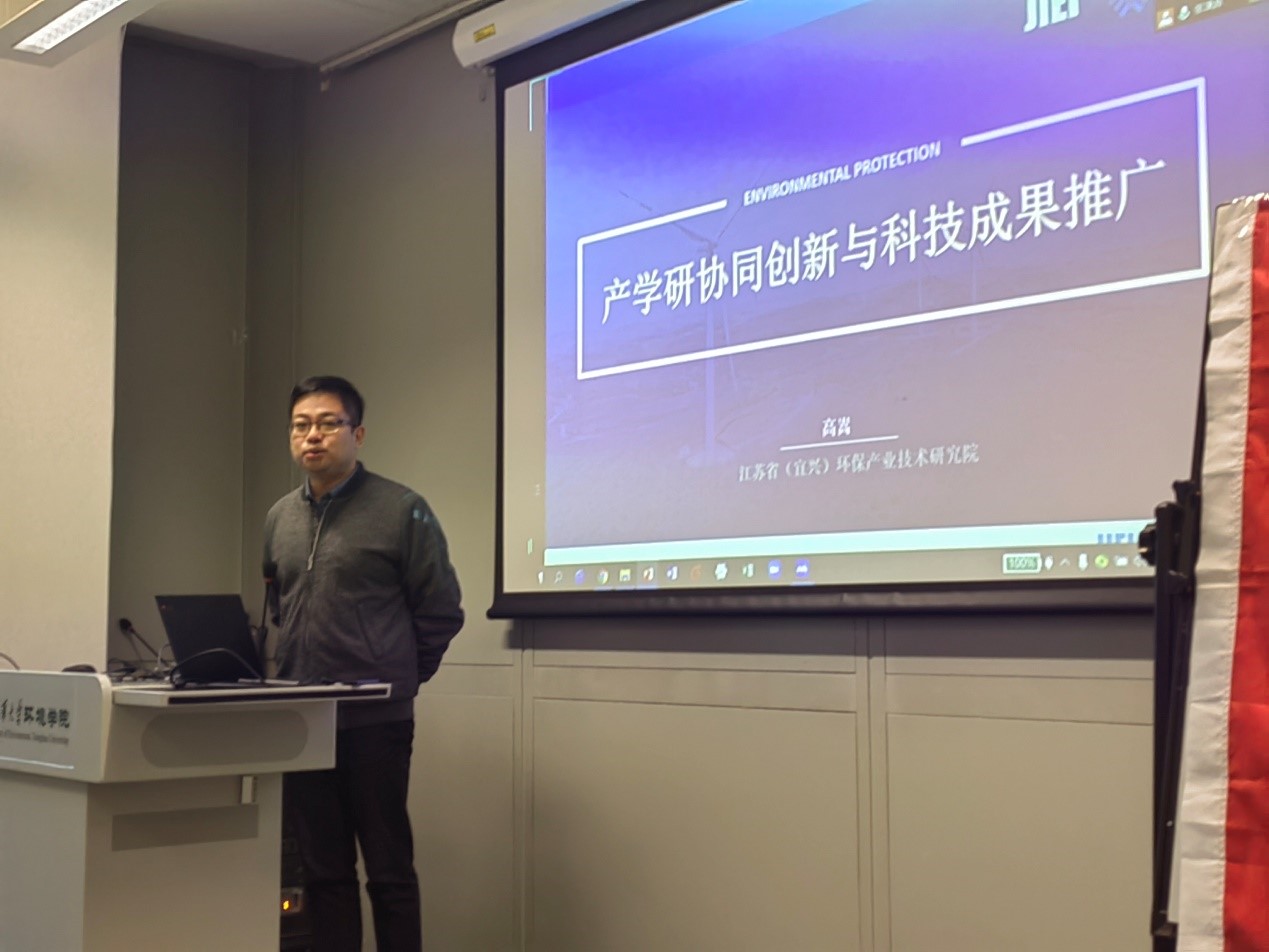 本次组织生活邀请了江苏省(宜兴)环保产业技术研究院院长高嵩、茅台科学与技术研究院副院长杨帆分享产学研协同发展经验。大家围绕高质量发展进行了交流与讨论。高嵩以“产学研协同创新与科技成果推广”为主题,与参会师生开展了深入交流与讨论。他首先介绍了全国最大的环保产业集群——宜兴环保科技工业园的基本概况,从产业发展模式、协同创新、成果推广三个方面分析了园区产业发展的经验,并探讨了未来发展新模式。他以独特的视角对国家标准不断提升、客户新技术需求迫切、处理工艺日趋复杂间的矛盾进行了剖析,以Wetsus为例介绍了集研发、制造、服务于一体的平台式发展新模式,探讨了平台在应对不确定性、推动产业发展和产学研结合等方面具有的独特优势。